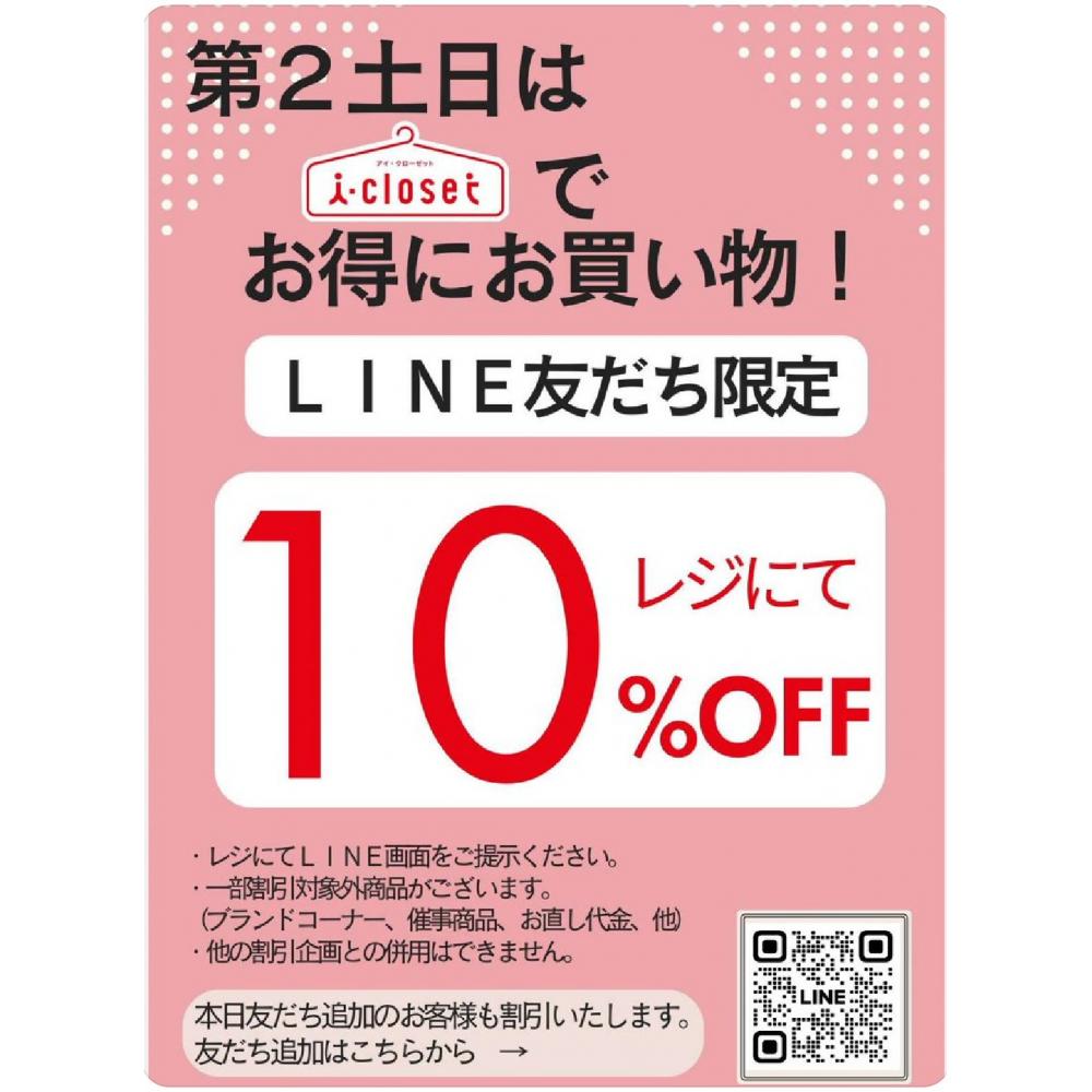 LINE友だち限定!毎月第2土日はお得にお買い物♪