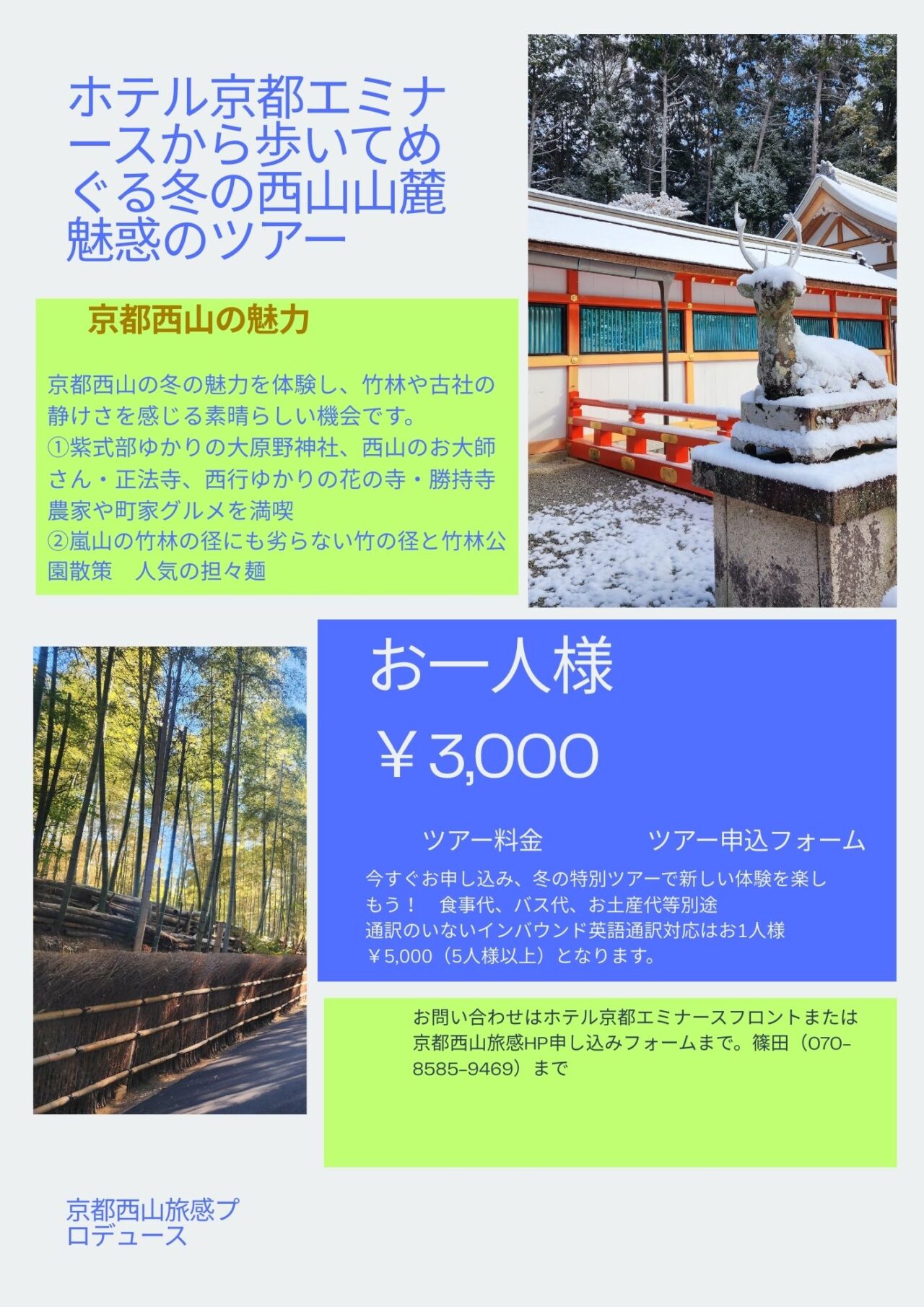 京都市西京区のホテル京都エミナースを拠点に、西山山麓の冬の魅力を歩いて楽しむ特別ツアーが2026年2月16日よりスタートしました。